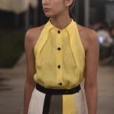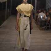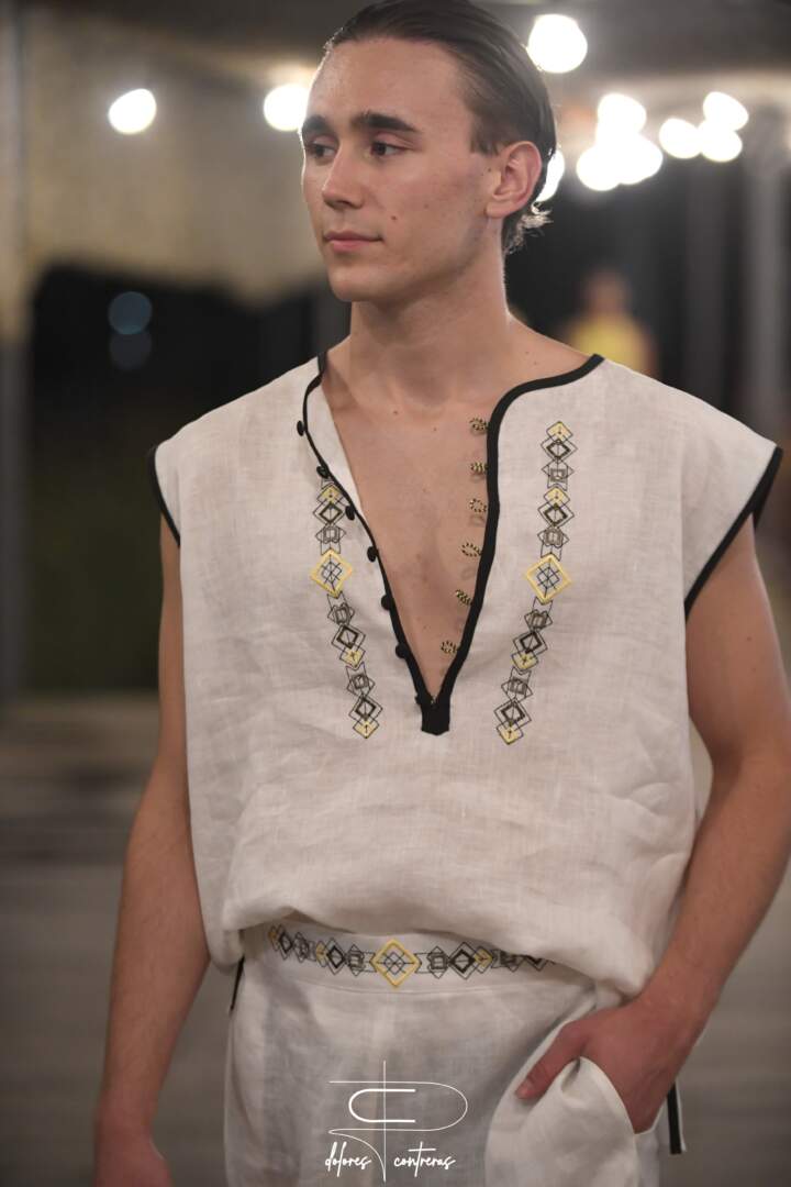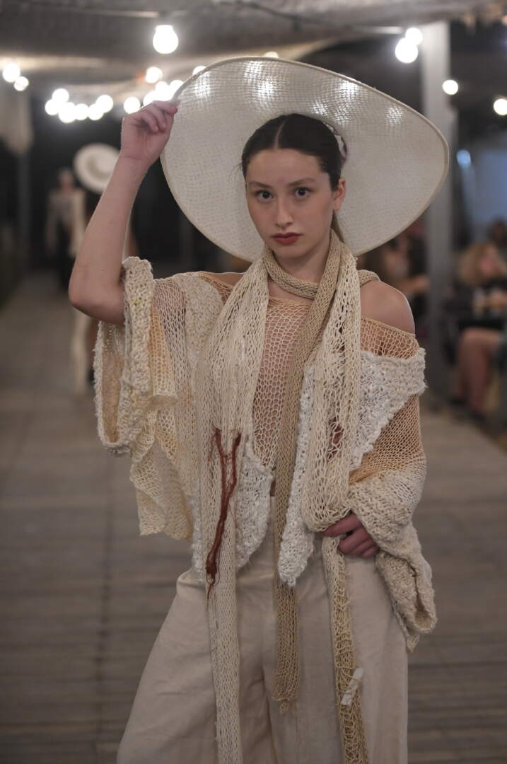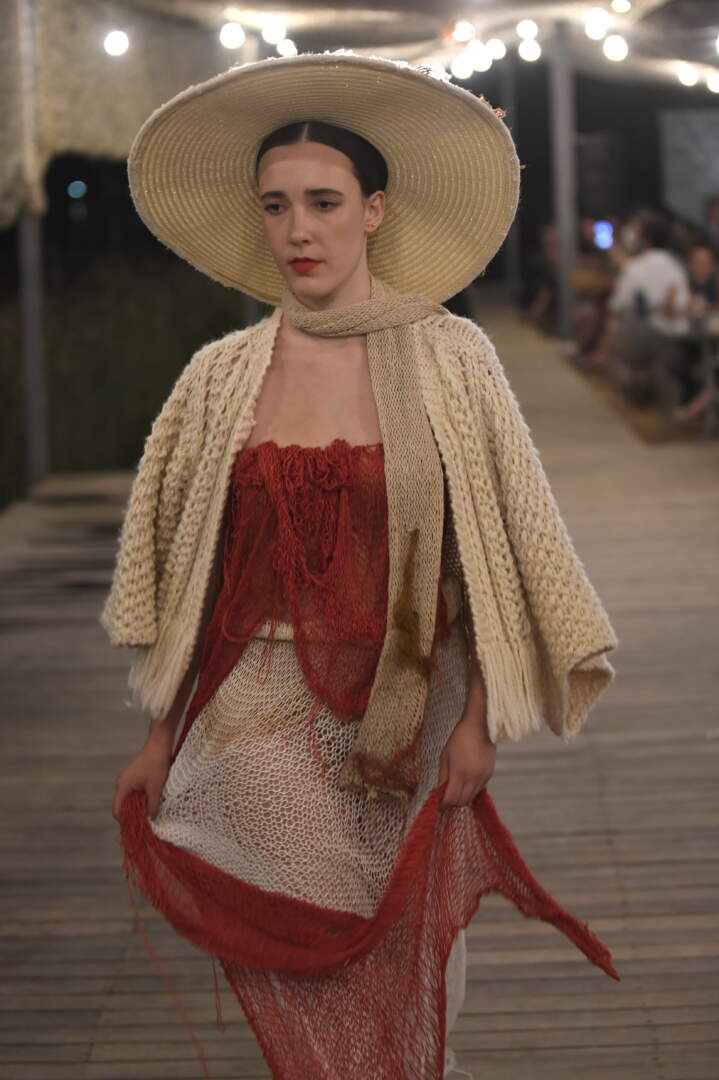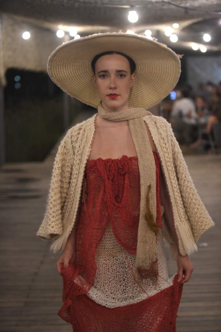 La colección que nos mostrará hoy se llama «Redes de los Andes». Arte, el hilo conductor que recorre la cordillera de los Andes y forma redes. Una mirada a los vestidos típicos y a la cultura chilena, llevada al futuro explicando una historia con vanguardia y artesanía, hecha completamente a mano, con textiles hechos a partir de materiales reciclados, sostenibles, naturales y también duraderos.