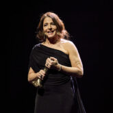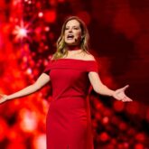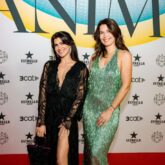 Leticia Dolera vestida de rojo de Pedro del Hierro que forma parte del desfile primavera / verano 2026 de la coleción » La Gran Metropoli», presentada en septiembre en la Mercedes Benz Fashion Week y Betsy Túrnez vestida de Santos Costura.