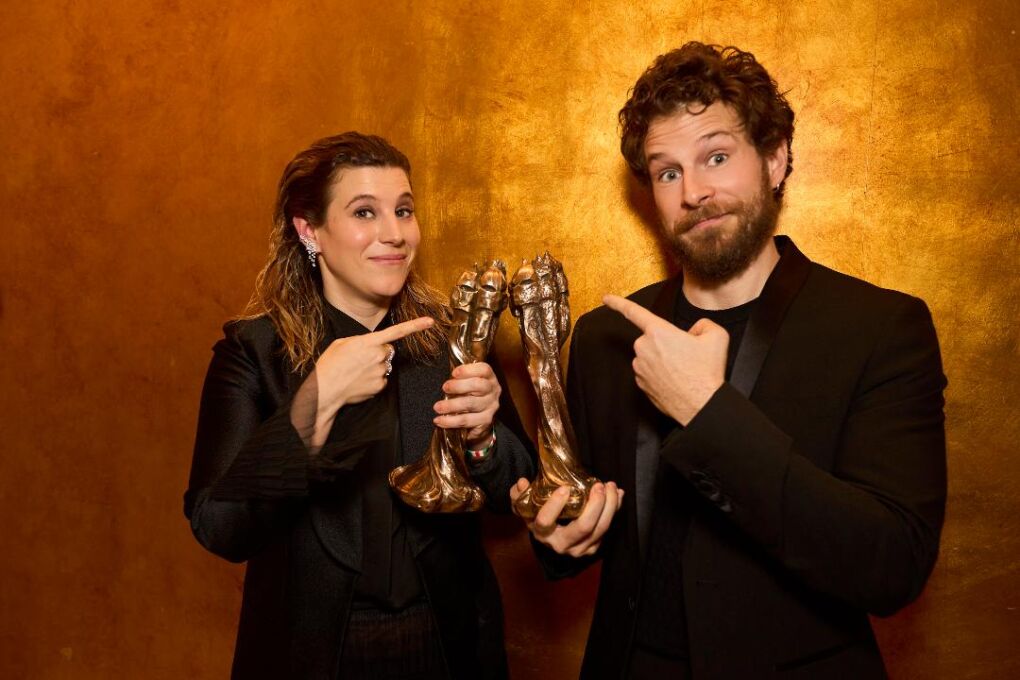 También asistió Álvaro Cervantes, vestido de Antony Morato, y su hermana Ángela Cervantes, que apostó por un diseño de Marta Martí. Ambos fueron reconocidos con un Gaudí durante la velada.